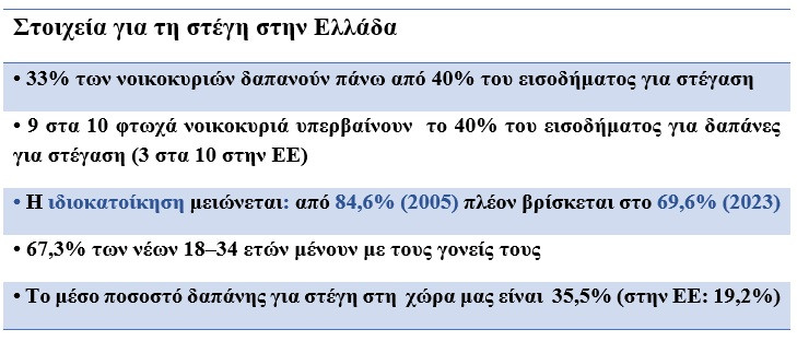 Ειδικά το τρίτο παράδειγμα είναι ιδιαίτερα επίκαιρο αφού τα τελευταία χρόνια η χώρα διέρχεται μια οξύτατη στεγαστική κρίση. Τα νούμερα είναι σοκαριστικά. Η Ελλάδα βρίσκεται πλέον στην πρώτη θέση στην Ευρώπη ως προς το ποσοστό εισοδήματος που δαπανάται για στέγαση, ενώ χιλιάδες νέοι άνθρωποι αδυνατούν να φύγουν από το πατρικό τους σπίτι.