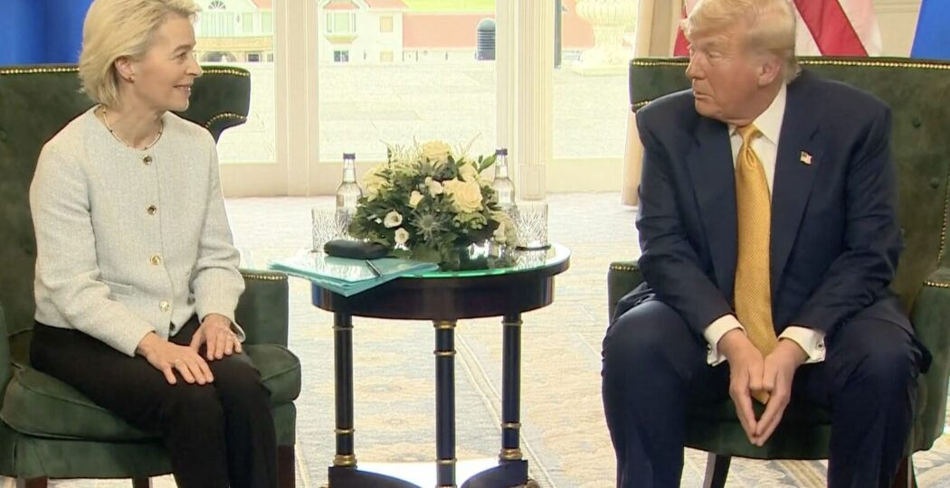 Στις 25 Ιουλίου, η Ούρσουλα φον ντερ Λάιεν υπέγραψε με τον Ντόναλντ Τραμπ, στη λέσχη γκολφ του τελευταίου στη Σκωτία, αυτό που η ίδια εξήρε ως συμφωνία «εμπορικής ειρήνης», αλλά που, στην ουσία, συνιστά «συμβόλαιο υποταγής» που θα πλήξει καίρια το διεθνές αποτύπωμα της ευρωπαϊκής οικονομίας:
